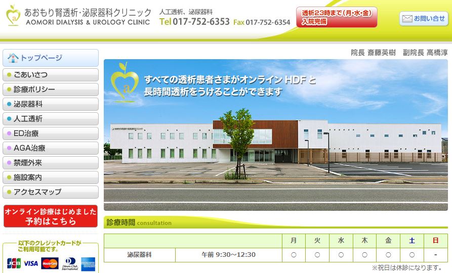 | 2.あおもり腎透析・ 泌尿器科クリニック (青森市) | 800円~ | 1,250円 | 1,000円~ | 非対応 | 初診:無料 再診:無料 | 要確認 |