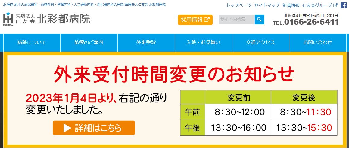 2.北彩都病院【JR旭川駅から徒歩2分】