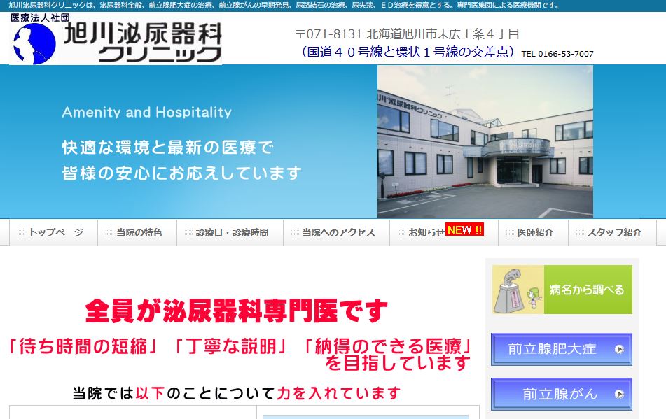 また、旭川泌尿器科クリニックでは、男性の治療に特化している訳でもありません。なので、男性専門クリニックをお探しの人にも不向きです。